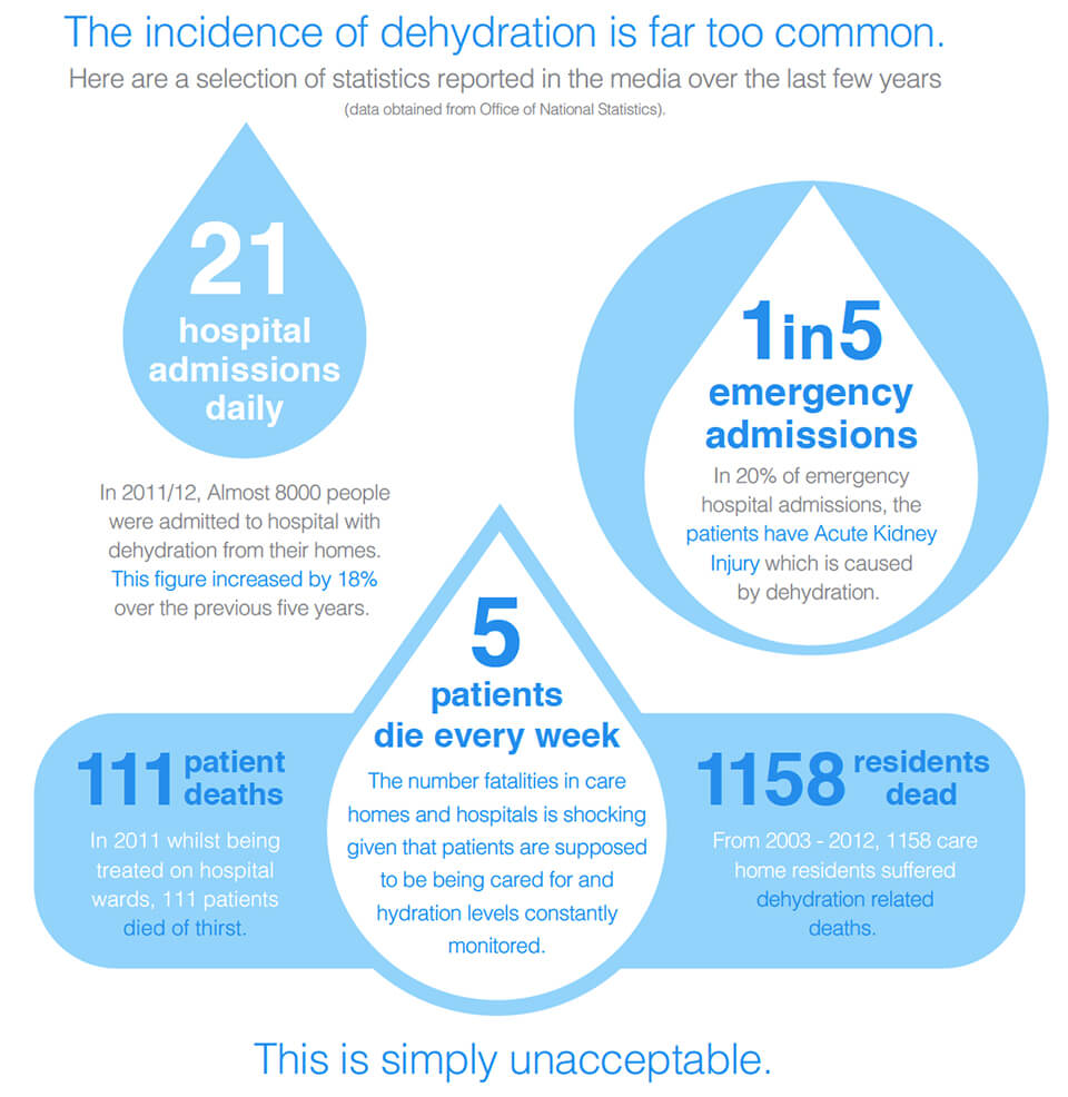 It is a particular problem in the elderly due to age related physiological changes - decreased body water content, reduced sense of thirst and decreased kidney function. The issue is further exacerbated for those who also have an underlying illness or reduced mobility, who may deliberately drink less to avoid bathroom trips or who simply struggle to reach, lift, and hold drinks.
